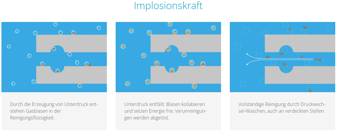 Unser innovatives Druckwechselverfahren Vakuum Impuls Technik (VIT) haben wir für Branchen entwickelt, in denen höchste Anforderungen an technische Sauberkeit gelten – oft im Mikrobereich bis auf molekulare Ebene. Hier werden rückstandsfreie Oberflächen benötigt mit validierbaren und reproduzierbaren Prozessen.